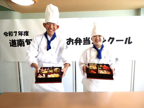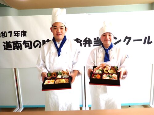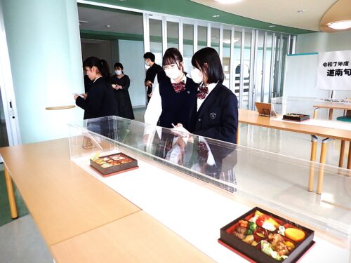 10月7日(火)・8日(水)、今年も調理科2年生による『道南旬の味覚 お弁当コンク-ル』が行われました。各班で地産地消に取り組み、道南を中心とした北海道産等の食材を使用したお弁当を製作しました。事前作成したレシピをもとに、テ-ブルには秋の味覚や趣向を凝らした具材を使用した、彩り豊かなお弁当ができあがりました。調理科の1年生と教職員が審査・投票して、クラスごとに順位を決めます。