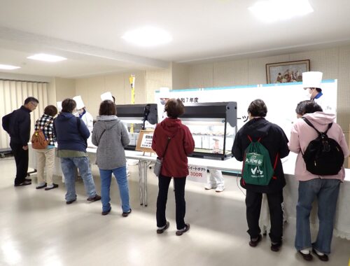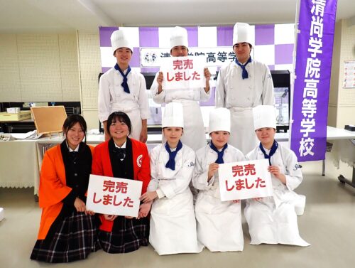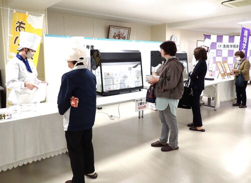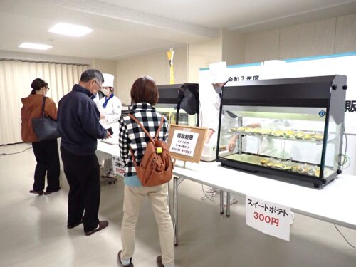 10月31日(金)、学習成果を地域の皆様に知ってもらうとともに、日頃の感謝の気持ちを伝えおうと、今年も校内でスイ-ツを販売しました。今回の販売品は「スイ-トポテト」(調理科3年生製作)、「モンブラン」(製菓衛生師科2年生製作)、「ガト-ショコラ」(製菓衛生師科3年生製作)の3種類です。生徒達が授業(実習)で製作したスイ-ツで、お陰様で地域の皆様にたくさん購入していただき、生徒達も大変喜んでいました。どうもありがとうございました。また来年も販売会を企画予定ですので、ぜひお越しください。お待ちしております。