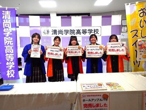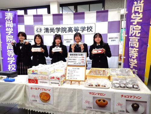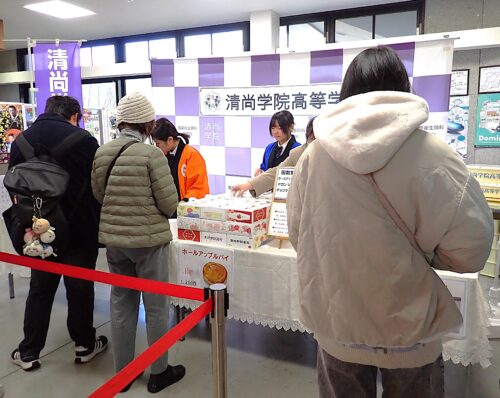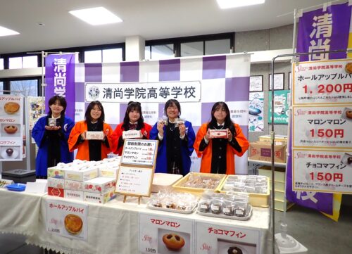 11月15日(土)、道の駅 なないろ・ななえで「清尚スイ―ツ販売会」を開催しました。当日は肌寒い日でしたが、お越しいただいた皆様からたくさんの温かい励ましのお言葉をいただき、そしてまた、たくさんの商品をご購入いただきありがとうございました。今年も昨年大好評でした七飯産のリンゴを使用した「ホールアップルパイ」「マロンマロン」「チョコマフィン」の3種類を販売しました。できるだけたくさんの方に購入していただきたいという思いから、昨年より販売個数を大幅に増やしました。オープン前には長い行列もでき、おかげさまで午前中に全商品を完売することができました。生徒達は充実感・達成感に溢れ、とても喜んでいました。また、今年もご支援くださいました七飯町振興公社 道の駅なないろ・ななえ様には感謝申し上げます。ありがとうございました。